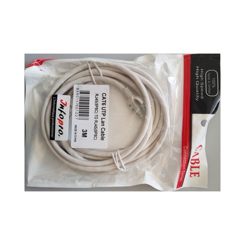 CABLE RESEAU RJ45 FINI CAT6E GIGABIT 3M INFOPRO AVEC CONNECTEURS