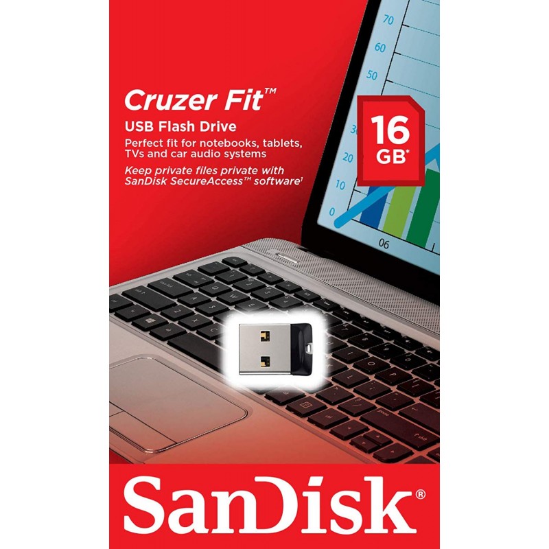 SanDisk Cruzer Fit SDCZ33-016G-B35 USB Flash Drive, 16 Go