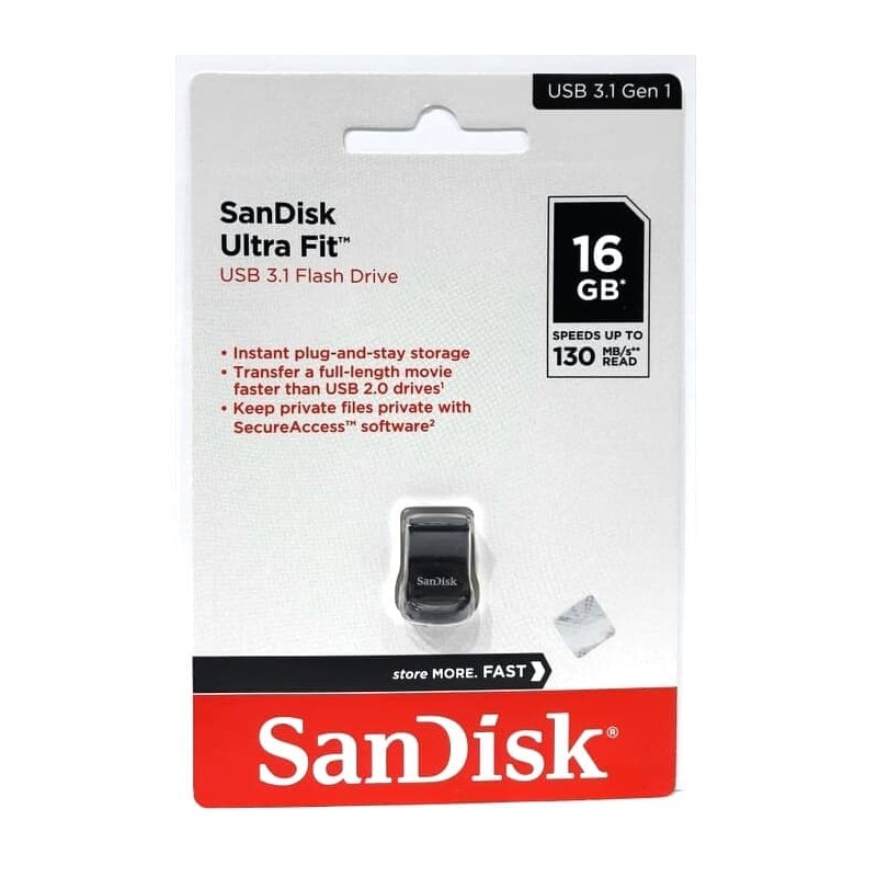Un moyen simple d’ajouter du stockage haute vitesse supplémentaire à votre périphérique ! La clé USB 3.1 SanDisk Ultra Fit™ offre des performances vous permettant de déplacer un film entier jusqu’à 15 x plus rapidement qu’avec des clés USB 2.0 standards.1De plus, grâce à son design rationnel et compact, vous pouvez la brancher et la laisser connectée.