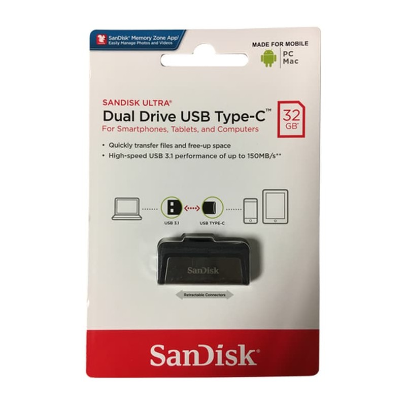 La vitesse impressionnante de l’USB 3.1 dans une clé USB Type-C™ Libérez facilement de l'espace sur votre smartphone2 ou transférez rapidement des fichiers entre vos appareils à une vitesse pouvant atteindre les 150 Mo/s grâce à la technologie USB 3.11. Dotée d'un connecteur réversible - USB Type-C™ et USB traditionnel -, la clé USB Type-C™ SanDisk Ultra® Dual Drive vous permet de transférer rapidement et facilement des fichiers entre vos smartphones, tablettes et ordinateurs. De plus, l'application SanDisk® Memory Zone pour Android™ (disponible sur Google Play™)3 vous permet de gérer la mémoire de votre appareil et votre contenu. La clé double connectique USB Type-C SanDisk Ultra Dual Drive est le lien parfait entre votre nouvel appareil USB Type-C et vos appareils dotés de ports USB traditionnels.