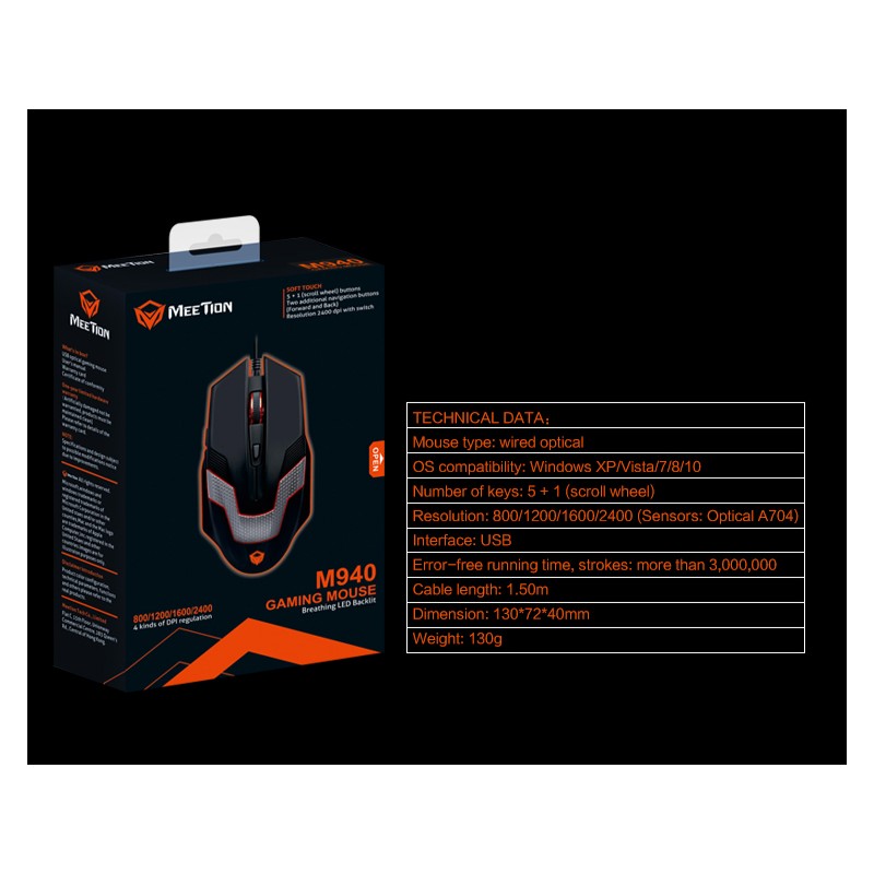 8. Dimension ergonomique de la souris: 130 × 72 × 40mm