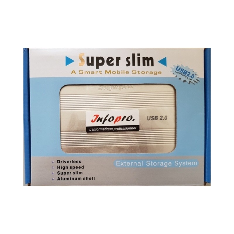 BOITIER 2.5" IDE INFOPRO EN USB2.0 POUR DISQUES DUR PORTABLE