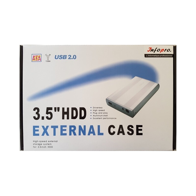 BOITIER 3.5" IDE INFOPRO EN USB2.0 POUR DISQUE DUR DE BUREAU
