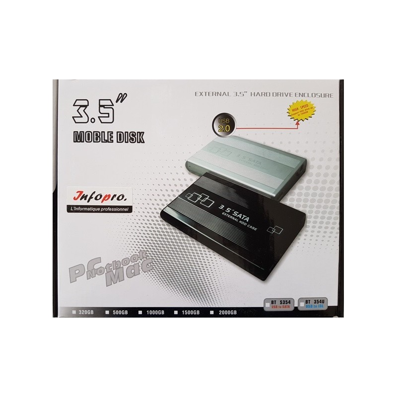 BOITIER 3.5" SATA INFOPRO EN USB2.0 POUR DISQUE DUR DE BUREAU